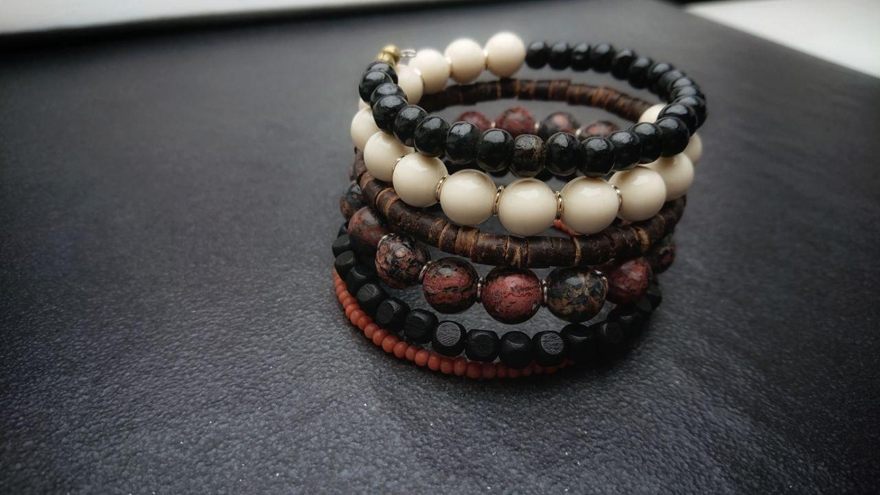 This lovey piece has been made using the very beautiful pink dalmatian jasper contrasted with black and neutral wooden beads and some white and pink plastic beads. All materials were sentinto my jewellery upcycling service making this piece perfect for your sustainable wardrobe.