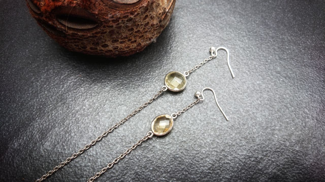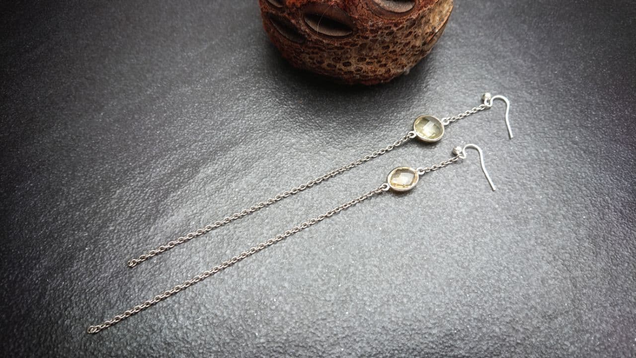 Silver and Yellow Faceted Glass Earrings